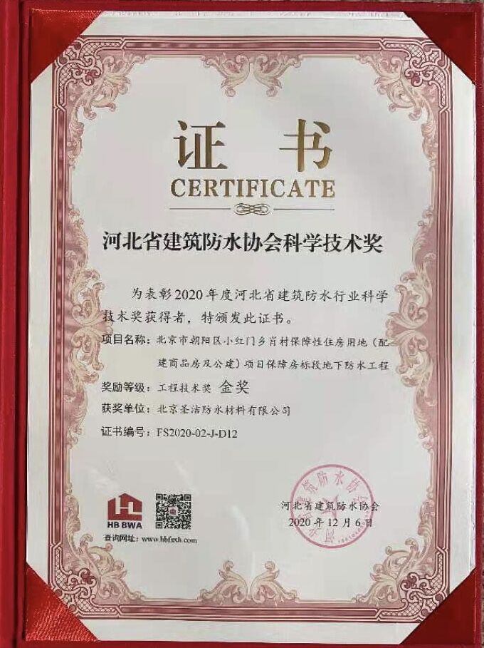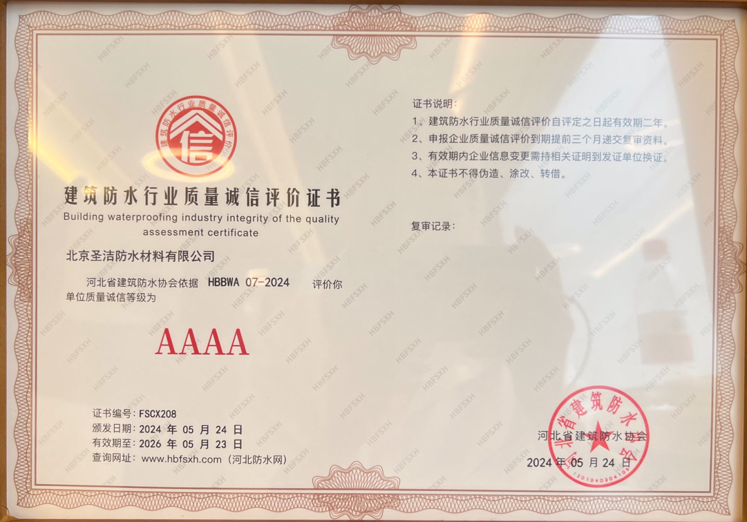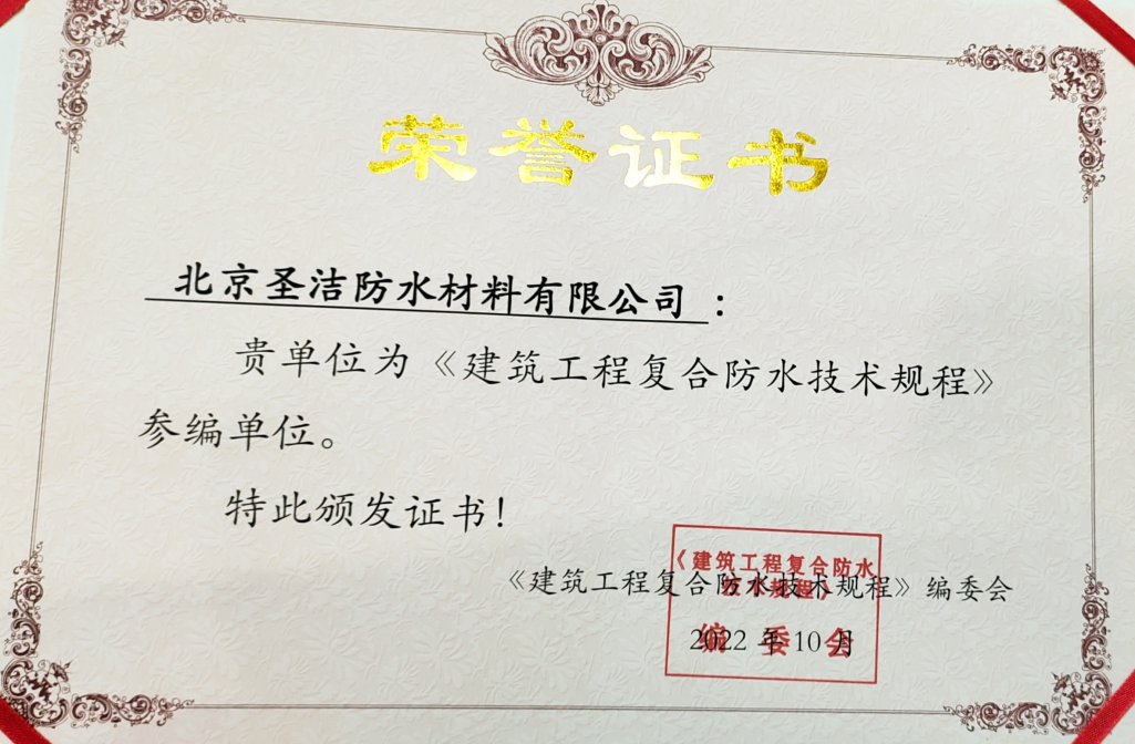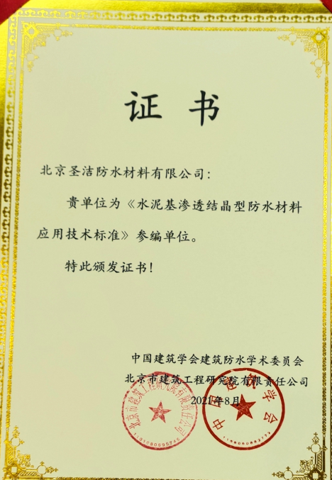 北京圣潔防水材料有限公司成立于1999年,注冊資金2.53億元。致力于系統解決防水問(wèn)題的探索和研究,經(jīng)過(guò)二十多年的積累與沉淀,圣潔防水已發(fā)展成為集產(chǎn)品研發(fā)、生產(chǎn)、銷(xiāo)售、施工于一體的規�;�,是中國防水二十強企業(yè),擁有國家專(zhuān)業(yè)防水一級資質(zhì)。 圣潔防水生產(chǎn)基地占地面積2萬(wàn)平米,全體員工320人,其中施工人員280人,為員工提供五險保障,公司是中國建筑防水協(xié)會(huì )常務(wù)理事單位、中國建筑業(yè)協(xié)會(huì )建筑防水分會(huì )、中國建筑學(xué)會(huì )、中國質(zhì)量檢驗協(xié)會(huì )建材專(zhuān)業(yè)委員會(huì )會(huì )員單位,通過(guò)了ISO9001國際質(zhì)量體系認證、ISO14001環(huán)境管理認證。被中國建材市場(chǎng)協(xié)會(huì )譽(yù)為“全國建材系統質(zhì)量、服務(wù)、信譽(yù)AAA企業(yè)”。歷年國家標準《地下工程防水技術(shù)規范》、《地下防水工程質(zhì)量驗收規范》和《屋面工程技術(shù)規范》、《屋面工程質(zhì)量驗收規范》的參編單位,截至目前為止,圣潔防水主編或參編的國標、行標、地標、團標已達103本。
